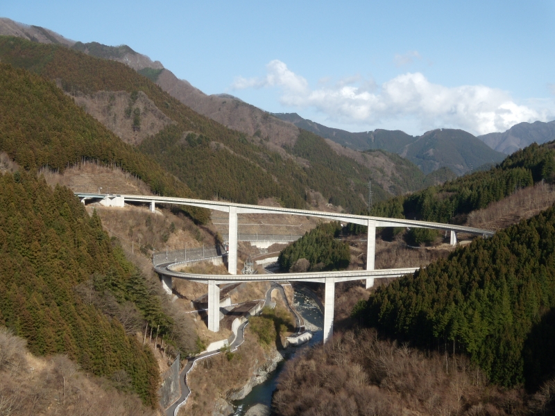 下久保ダムは堤体が90度まがった珍しいダムで見所満載