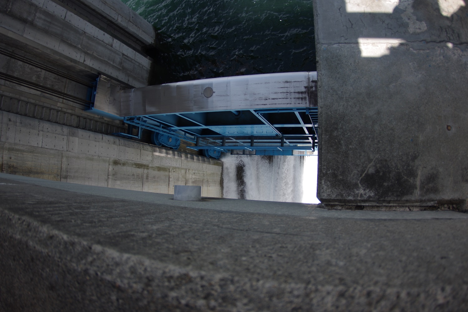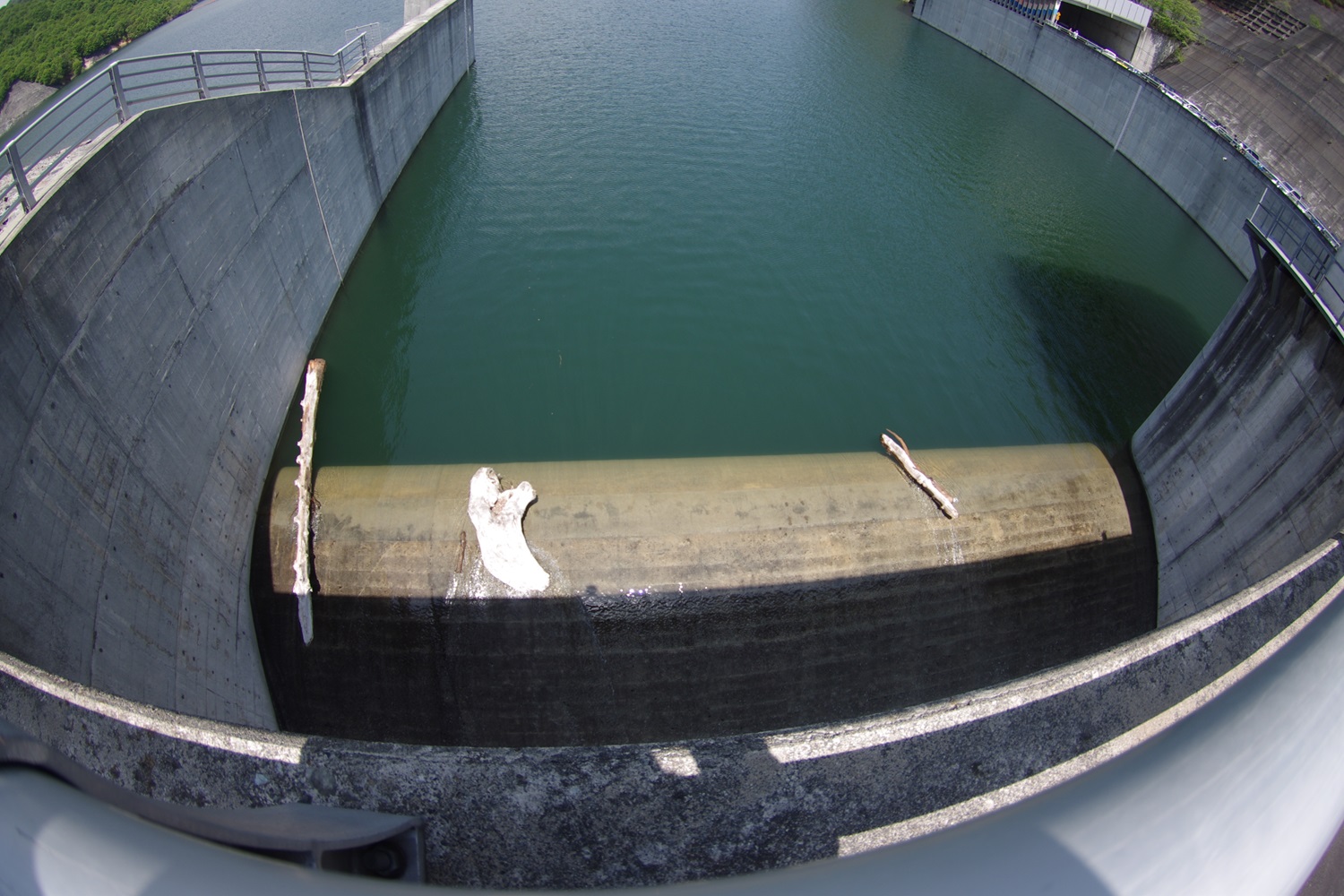 洪水吐直下の橋の上にいると、放流された水が起こす風があたって気持ちがいい