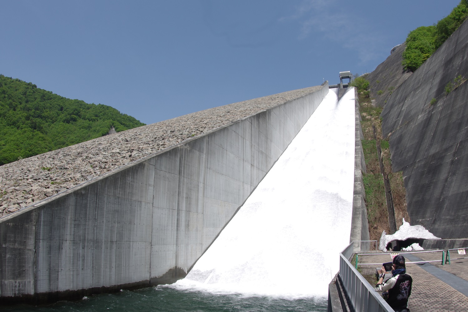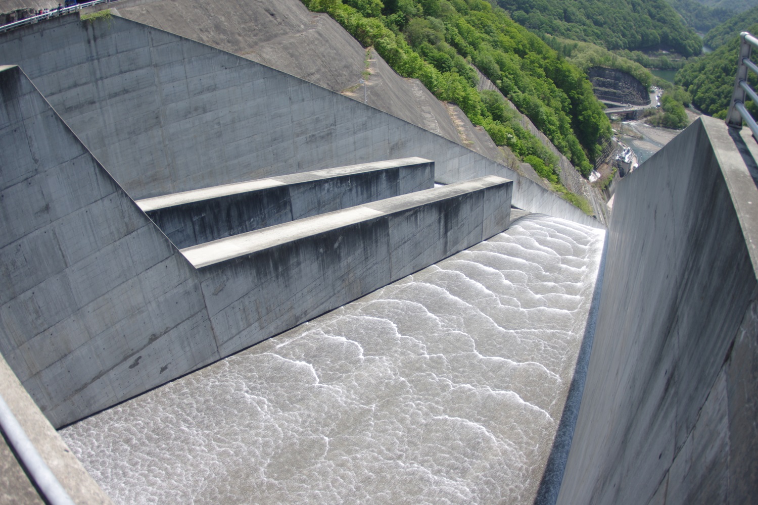 矢木沢ダムの点検放流を見学し終え、ついでにクレスト放流している須田貝ダムもみて既に結構満足気味