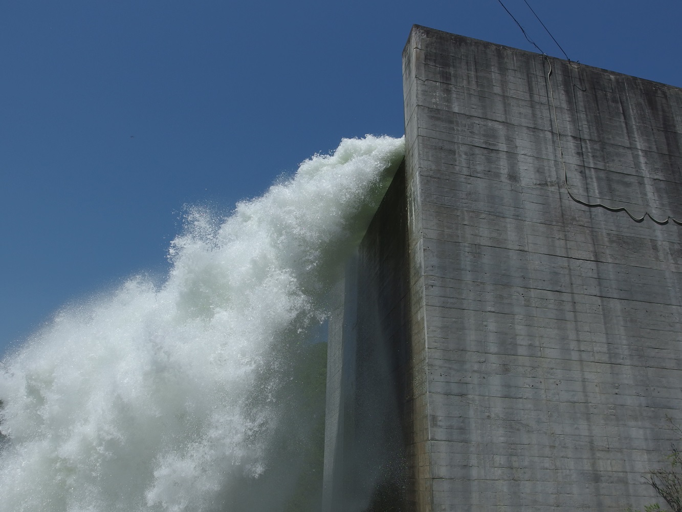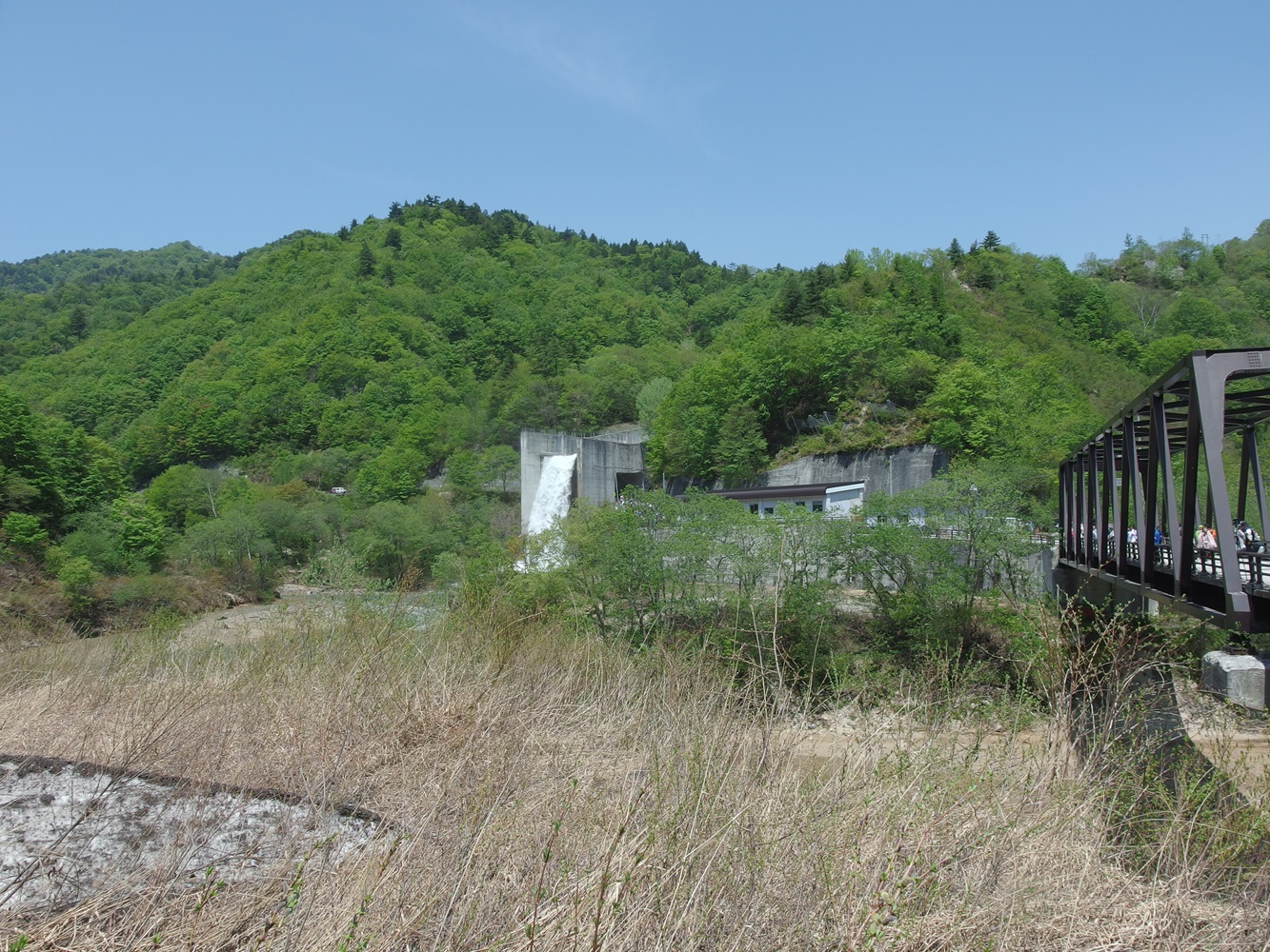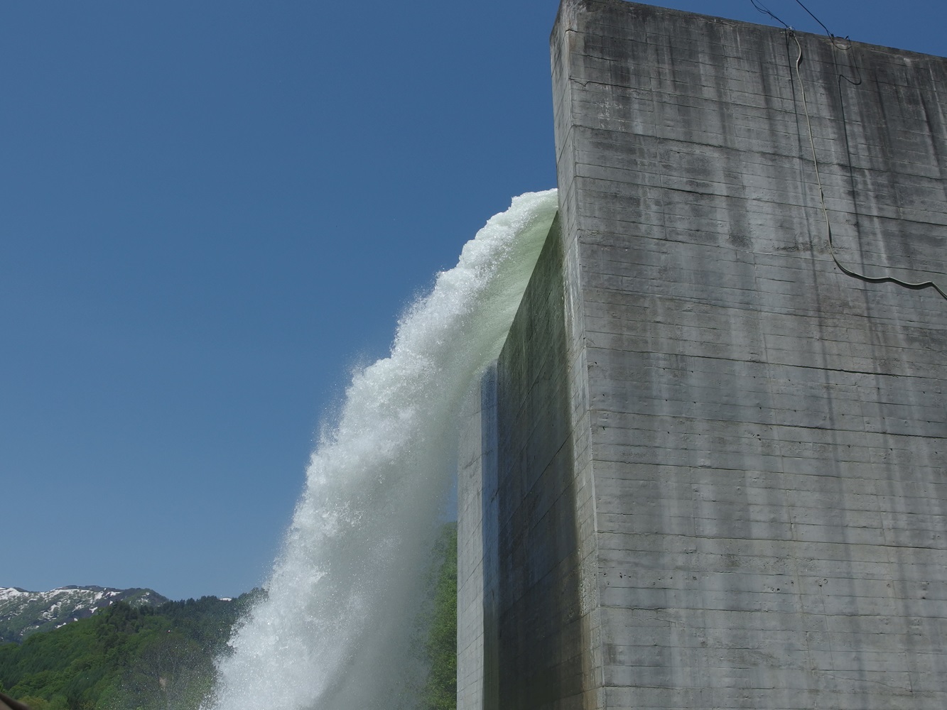 矢木沢から奈良俣に移動中、須田貝ダムの放流を見学