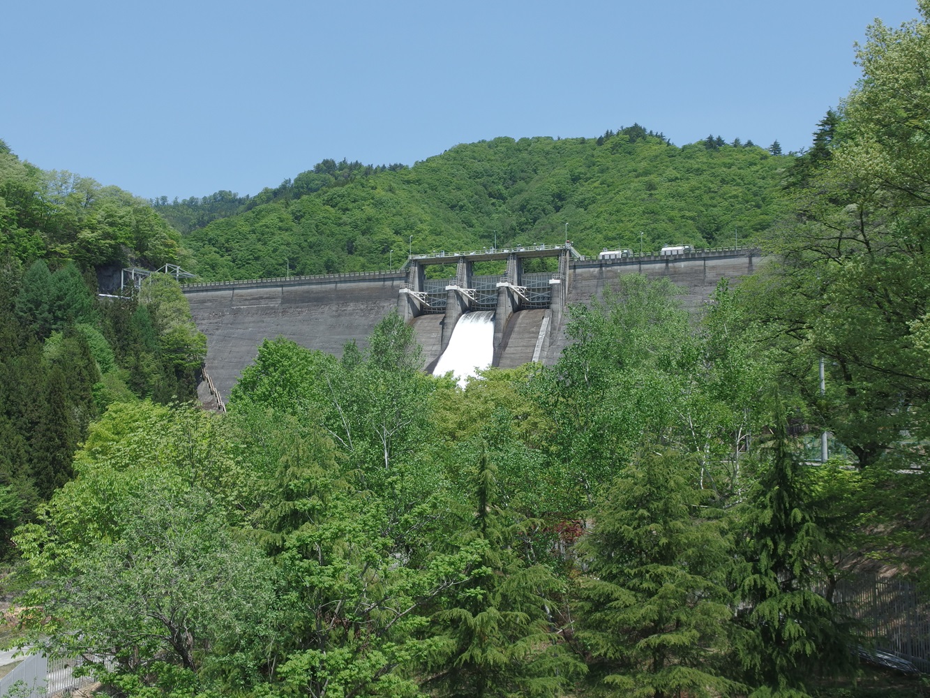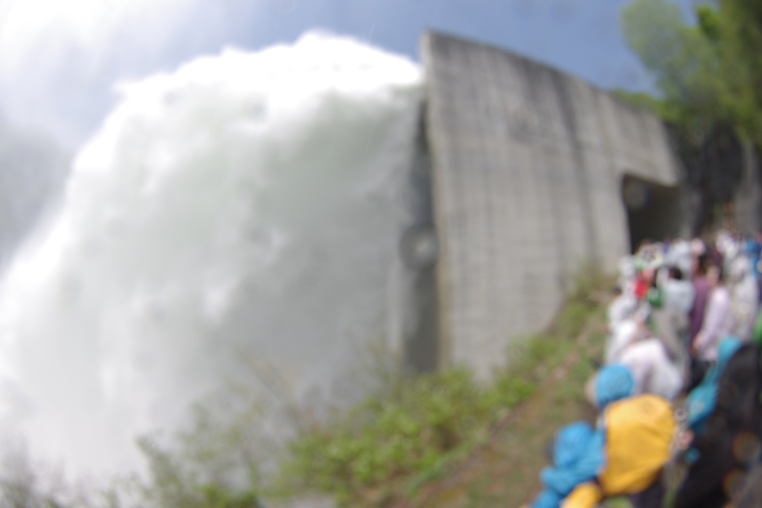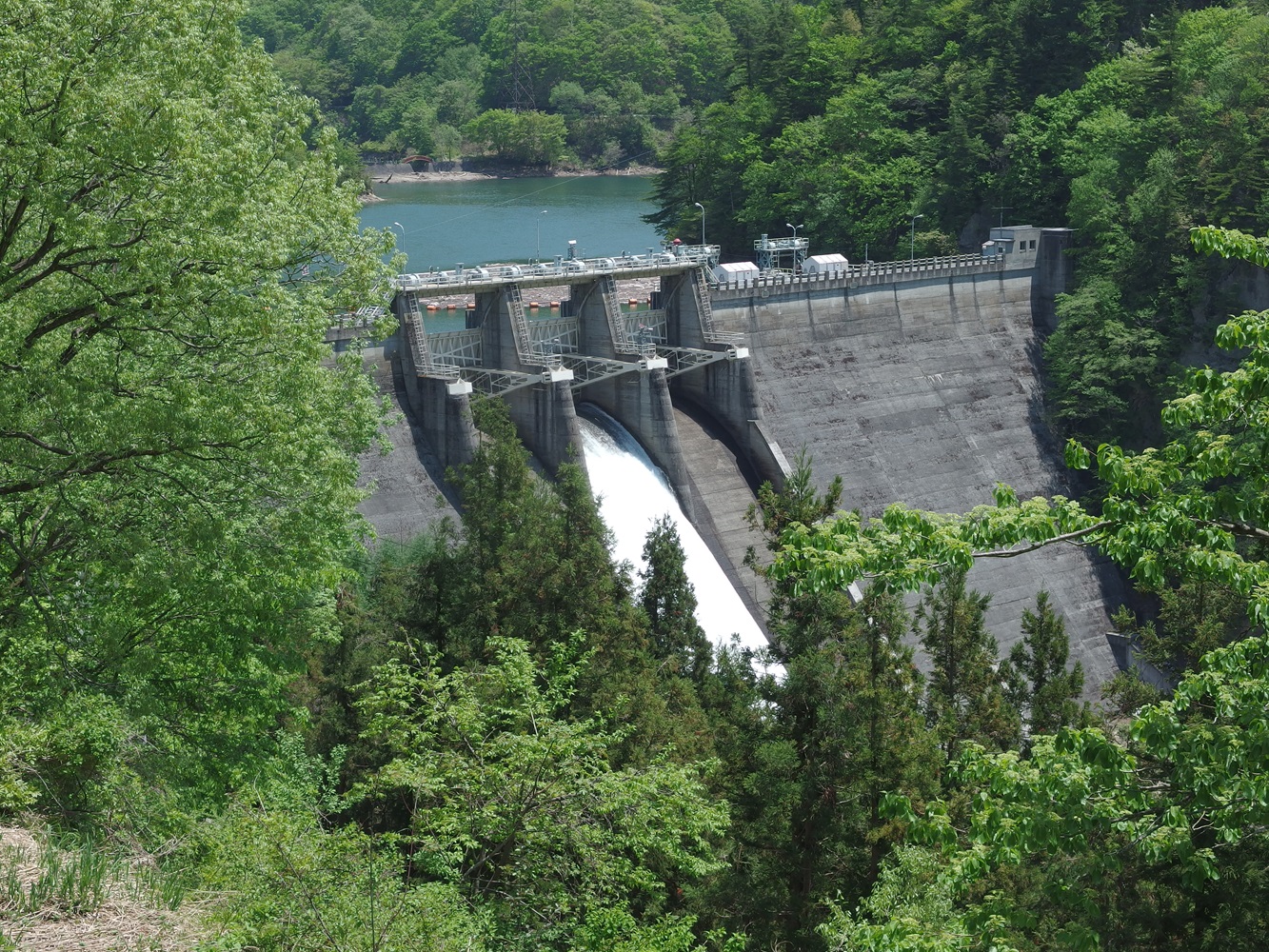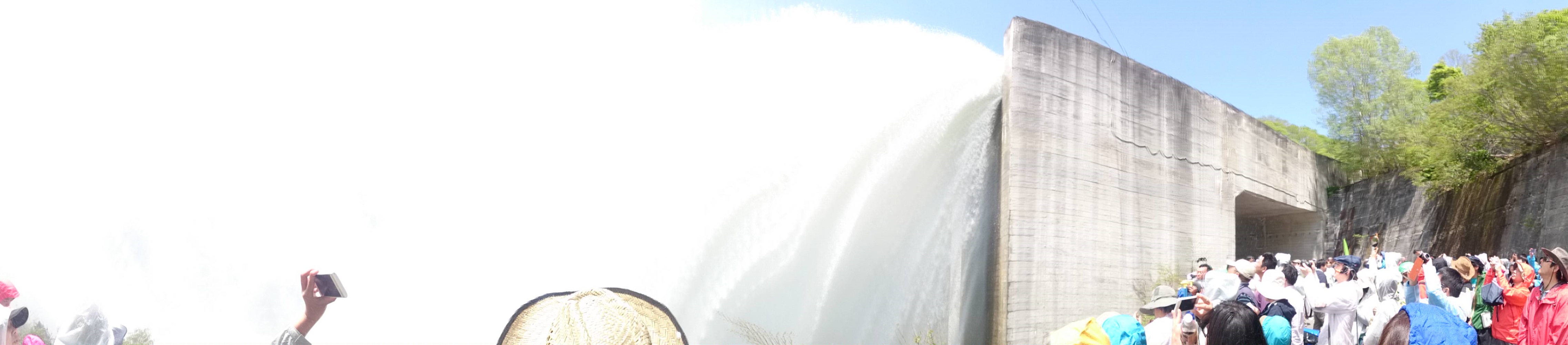 矢木沢から奈良俣に移動中、須田貝ダムの放流を見学