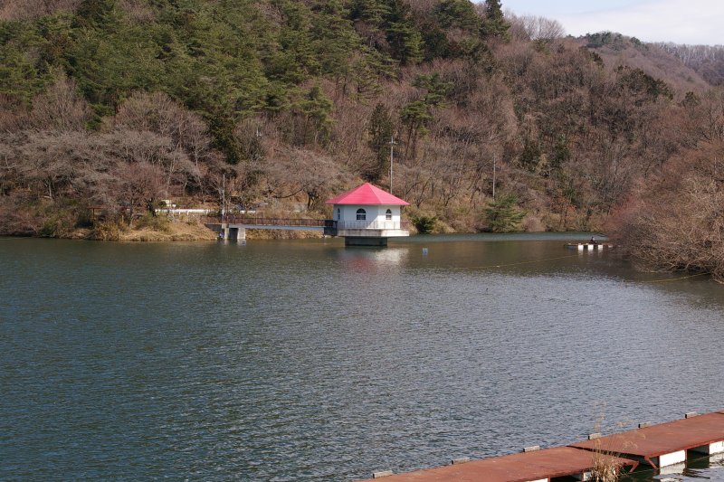 これは取水設備?可愛らしい赤い屋根が目立っていました