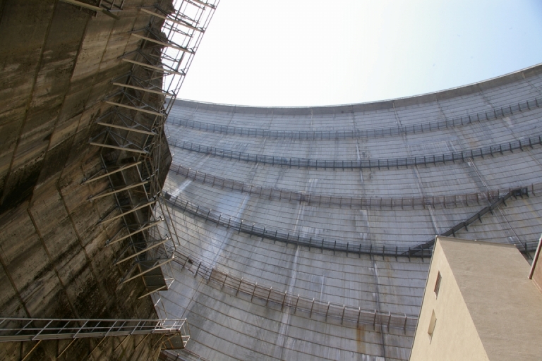 雨が直接当たらない堤体は竣工から40年たった今でも白い