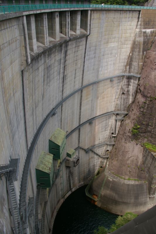 堤高117m、堤頂長131m、縦に長いアーチ式コンクリートダム