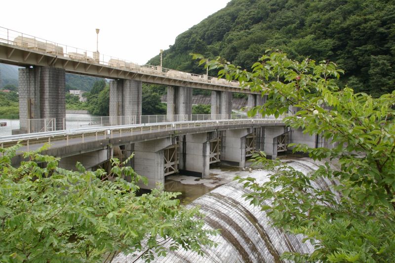 計画では60mの堤高をもつ(当時)日本一のダムだったが、設置箇所の岩盤不良により現在の高さで打ち止めになったそうです