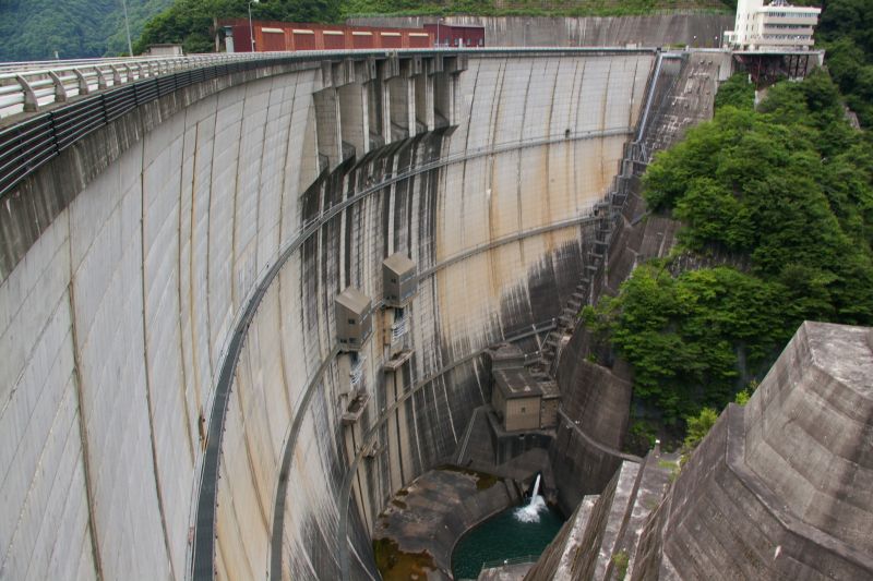 堤高112m(建設当時日本一)、堤頂長267m、重力式コンクリートダム
