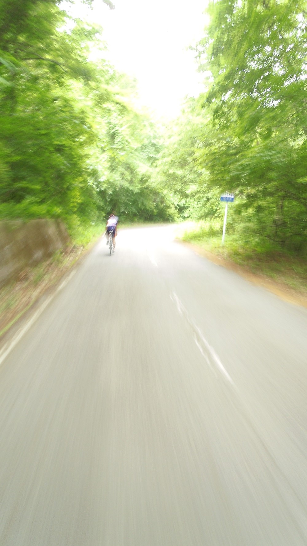 1車線の林道を自転車20台くらいで上ったり下りたりしているさまは面白いです