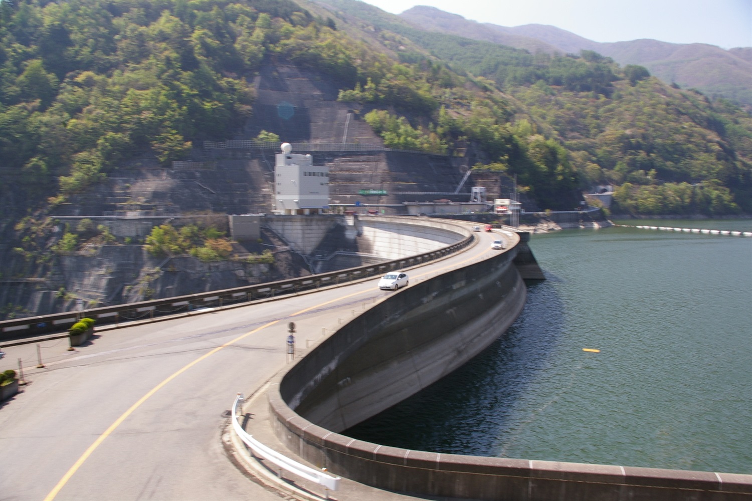 堤体上の国道は結構交通量多いですね