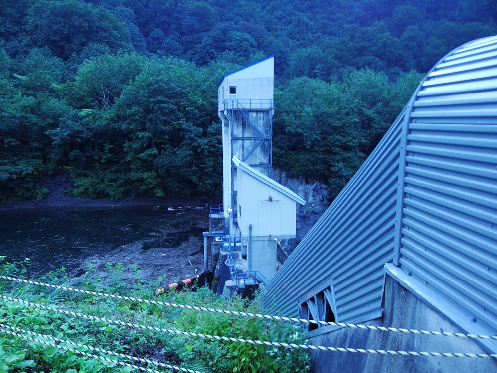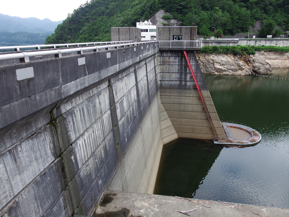 普段は水位が低く、堤体上流側が丸見え