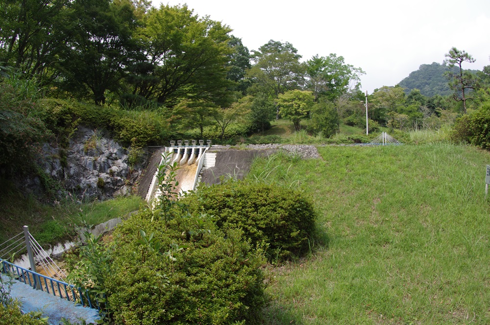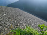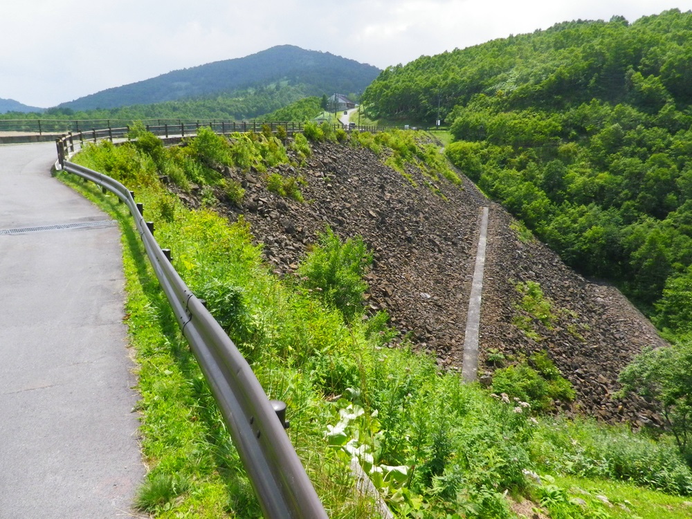 ロックフィルの割に下流側の斜度がきついように感じる、ちょっと重力式っぽい
